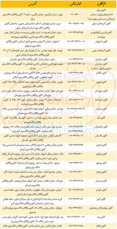 نشانی-و-شماره-تماس-کانون-های-وکلای-دادگستری-سراسر-کشور